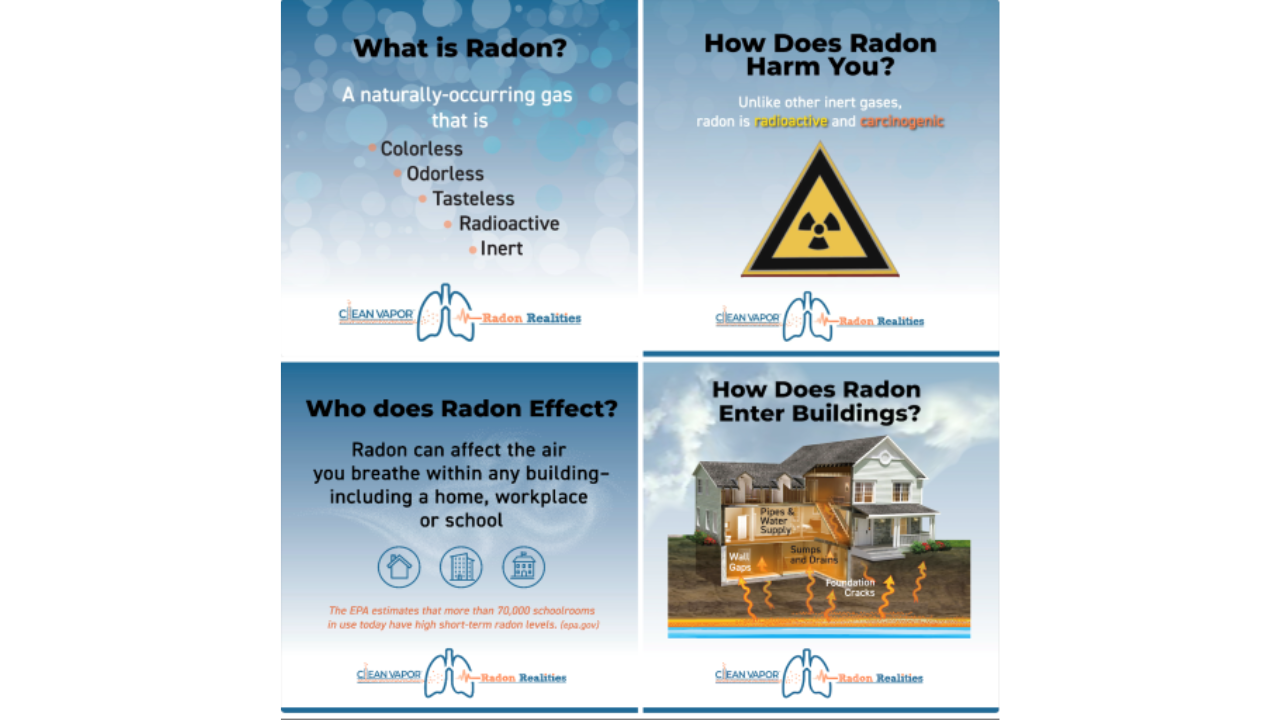 Throughout January, Clean Vapor will share an informational series we call Radon Realities. This information is collected from various sources, including our in-house Subject Matter Experts (SMEs), Tom Hatton and Matt Koch, who have a wealth of knowledge and expertise in the radon arena. So, please give us a Follow, a Like, or Share on social media to get a month’s worth of valuable facts and information about radon.
